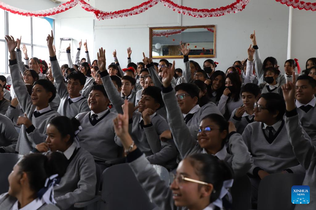 NEZAHUALCOYOTL, 29 mayo, 2025 -- Imagen del 28 de mayo de 2025 de estudiantes participando en una actividad durante un evento para celebrar el Festival del Bote del Dragón, en la Escuela Secundaria "Leyes de Reforma", en Nezahualcóyotl, México. (Xinhua/Daniel Augusto)