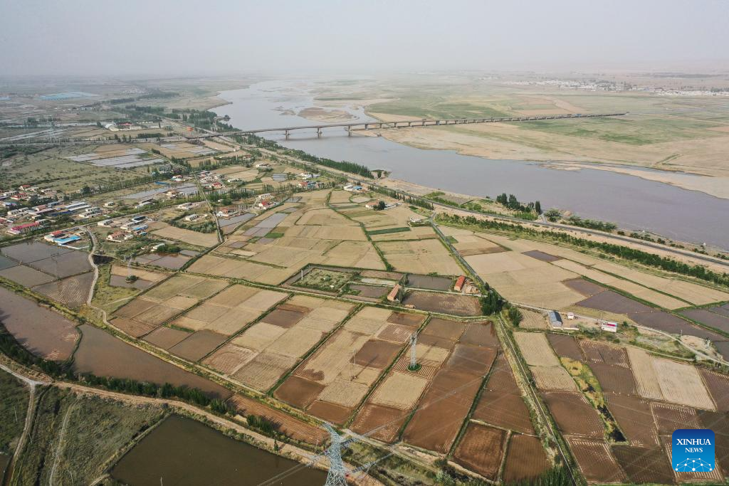 BAYANNUR, 29 mayo, 2025 (Xinhua) -- Vista aérea tomada con un dron el 28 de mayo de 2025 de un proyecto de control de agua, en el distrito de Linhe de Bayannur, en la región autónoma de Mongolia Interior, en el norte de China. La Zona de Riego de Hetao, ubicada en Bayannur, en la región autónoma de Mongolia Interior, en el norte de China, ha desviado agua del río Amarillo para riego desde la antigüedad. El proyecto de riego fue incluido en el Patrimonio Mundial de Estructuras de Riego en 2019. (Xinhua/Ma Jinrui)