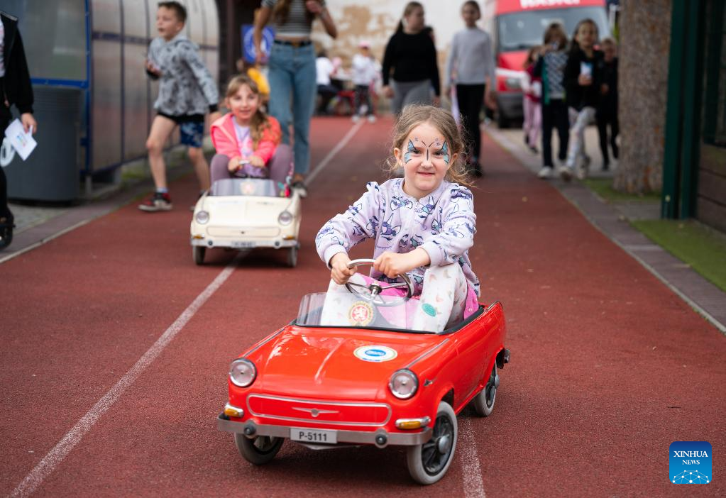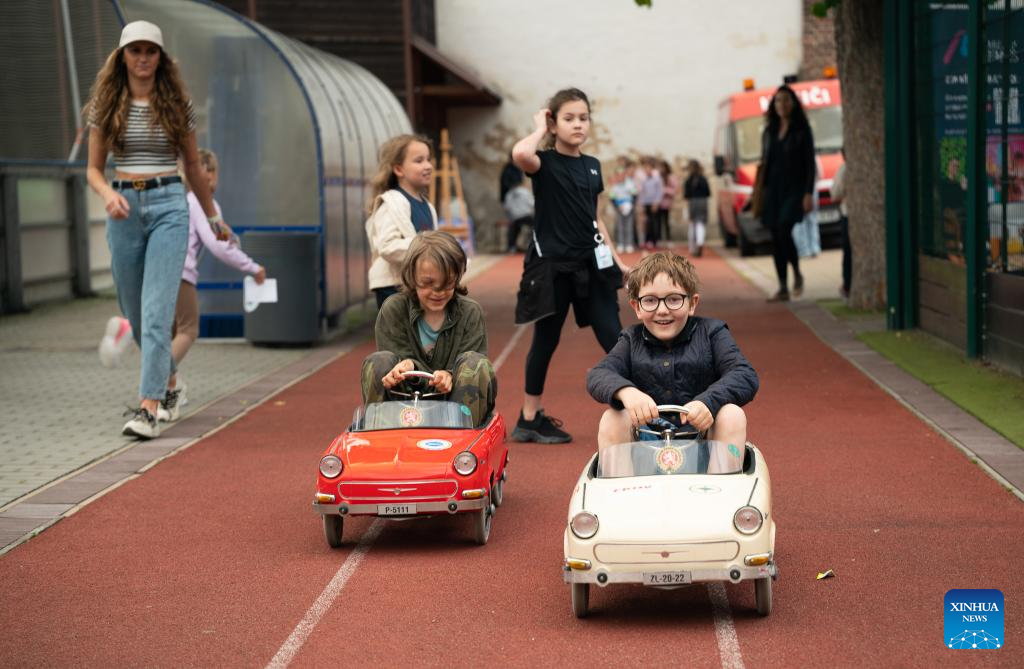 PRAGA, 31 mayo, 2025 (Xinhua) -- Imagen del 30 de mayo de 2025 de niños probando vehículos de pedales durante un evento para celebrar el Día Internacional del Niño en un complejo deportivo, en Praga, República Checa. (Xinhua/Dana Kesnerova)