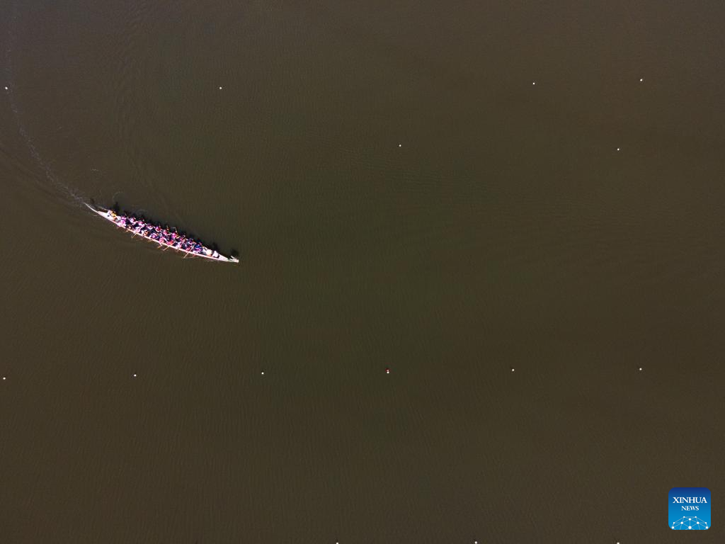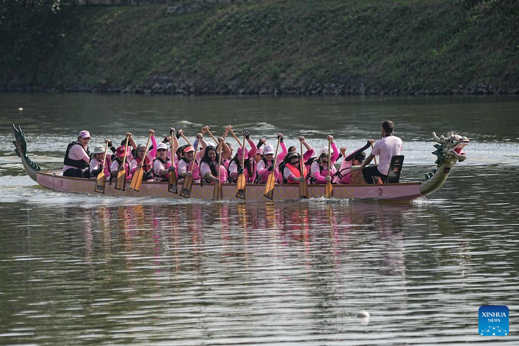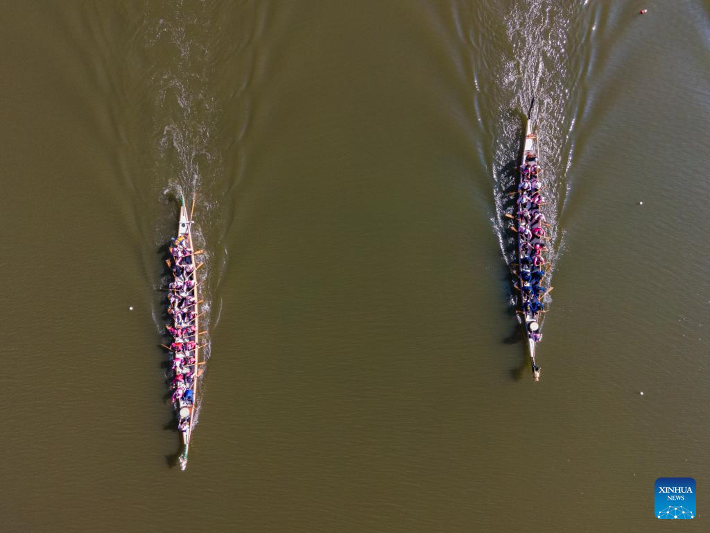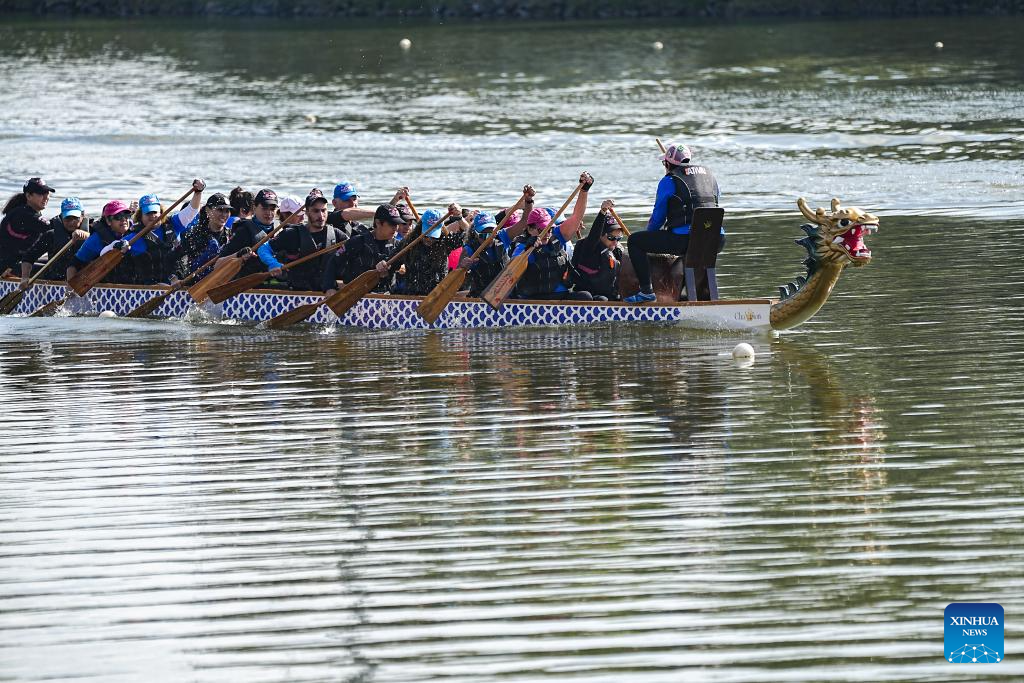SAO PAULO, 1 junio, 2025 (Xinhua) -- Imagen del 31 de mayo de 2025 de personas participando en la tercera edición del Día del Bote del Dragón en la Pista Olímpica de la Universidad de Sao Paulo, en Sao Paulo, Brasil. (Xinhua/Paulo Lopes)