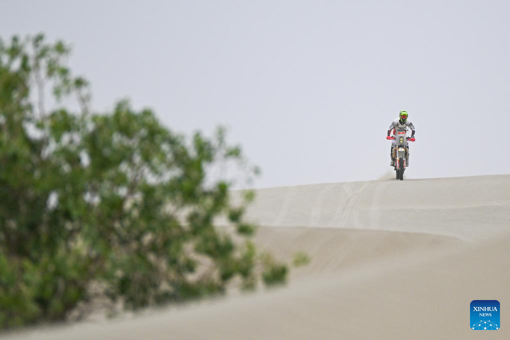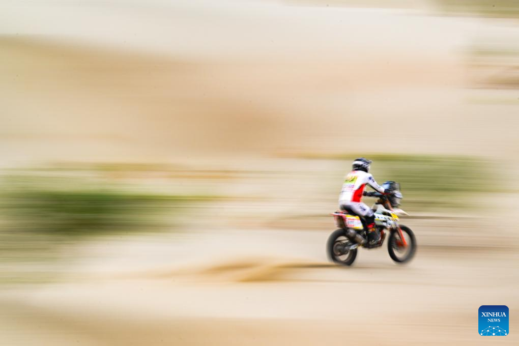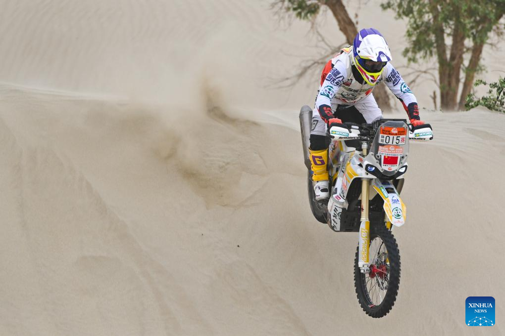 KASHGAR, 1 junio, 2025 (Xinhua) -- Sulaiman Daguti, de China, compite durante la Etapa 10 del Rally Taklimakan 2025, en Kashgar, en la región autónoma uygur de Xinjiang, en el noroeste de China, el 1 de junio de 2025. (Xinhua/Xin Yuewei)