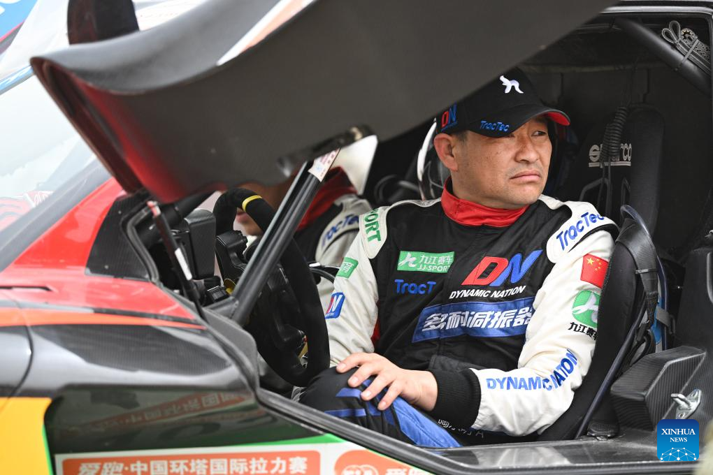 KASHGAR, 1 junio, 2025 (Xinhua) -- El piloto Tao Yongming, de China, reacciona después de la Etapa 10 del Rally Taklimakan 2025, en Kashgar, en la región autónoma uygur de Xinjiang, en el noroeste de China, el 1 de junio de 2025. (Xinhua/Xin Yuewei)