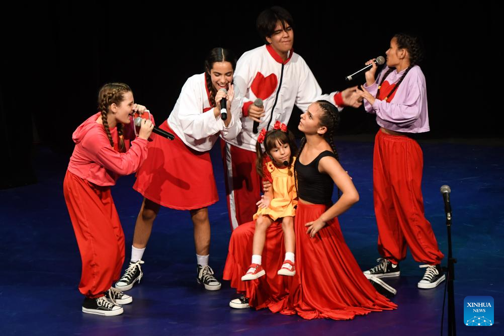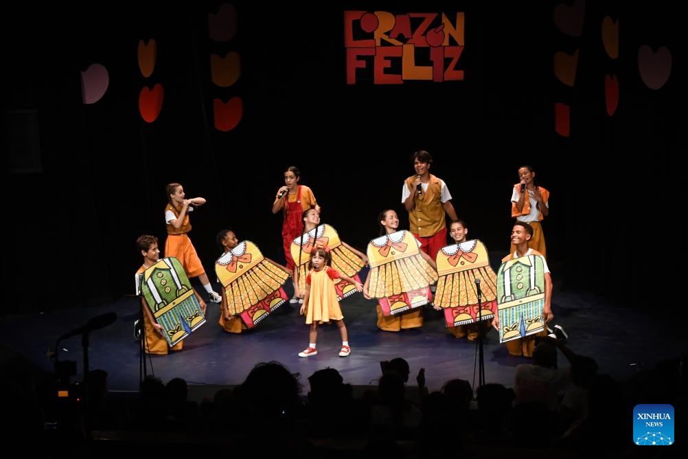 LA HABANA, 1 junio, 2025 (Xinhua) -- Imagen del 30 de mayo del 2025 de artistas de la compañía infantil Gabi&Sofi realizando una presentación durante el concierto "Un viaje para crecer", en el marco de la celebración del Día Internacional del Niño, en la sala teatro del Museo Nacional de Bellas Artes, en La Habana, capital de Cuba. (Xinhua/Joaquín Hernández)