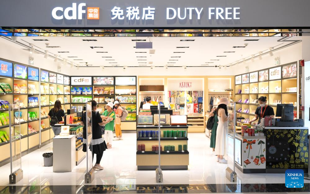 HAIKOU, 1 junio, 2025 (Xinhua) -- Imagen del 26 de julio de 2023 de personas seleccionando productos libres de impuesto en el Aeropuerto Internacional Phoenix, en Sanya, en la provincia de Hainan, en el sur de China. En junio de 2020, China lanzó un plan maestro para desarrollar Hainan en un puerto de libre comercio de alto nivel y globalmente influyente para la mitad de este siglo. En los años recientes, la provincia insular ha buscado convertirse en un centro internacional de turismo y consumo con un auge de compras libres de impuestos. (Xinhua/Yang Guanyu)
