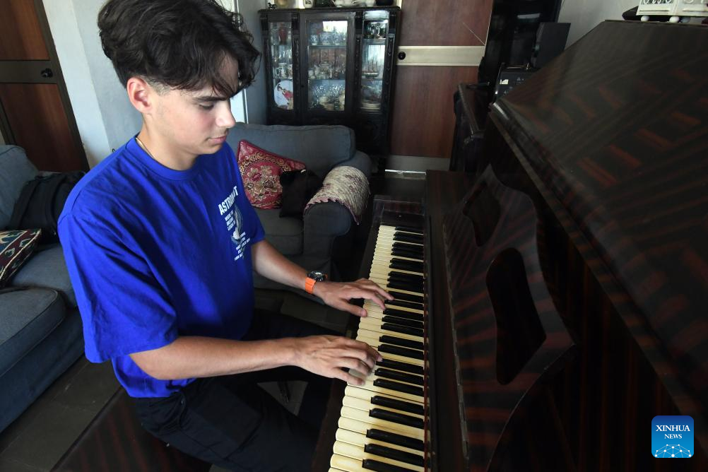 LA HABANA, 1 junio, 2025 (Xinhua) -- Imagen del 31 de mayo de 2025 del joven Marcel Curbelo, ganador de la edición cubana del concurso Puente Chino para estudiantes de la enseñanza media, tocando el piano en su casa, en La Habana, capital de Cuba. Curbelo, reciente ganador de la edición cubana del Concurso Puente Chino para estudiantes de la enseñanza media, considera que la cultura china ha marcado su vida de manera profunda. (Xinhua/Joaquín Hernández