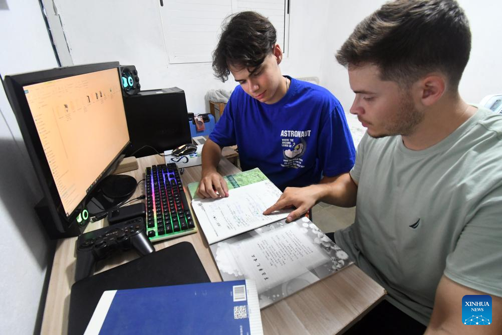 LA HABANA, 1 junio, 2025 (Xinhua) -- Imagen del 31 de mayo de 2025 del joven Marcel Curbelo (i), ganador de la edición cubana del concurso Puente Chino para estudiantes de la enseñanza media, revisando un texto en un cuaderno con su hermano Rodrigo (d) en su casa, en La Habana, capital de Cuba. Curbelo, reciente ganador de la edición cubana del Concurso Puente Chino para estudiantes de la enseñanza media, considera que la cultura china ha marcado su vida de manera profunda. (Xinhua/Joaquín Hernández)