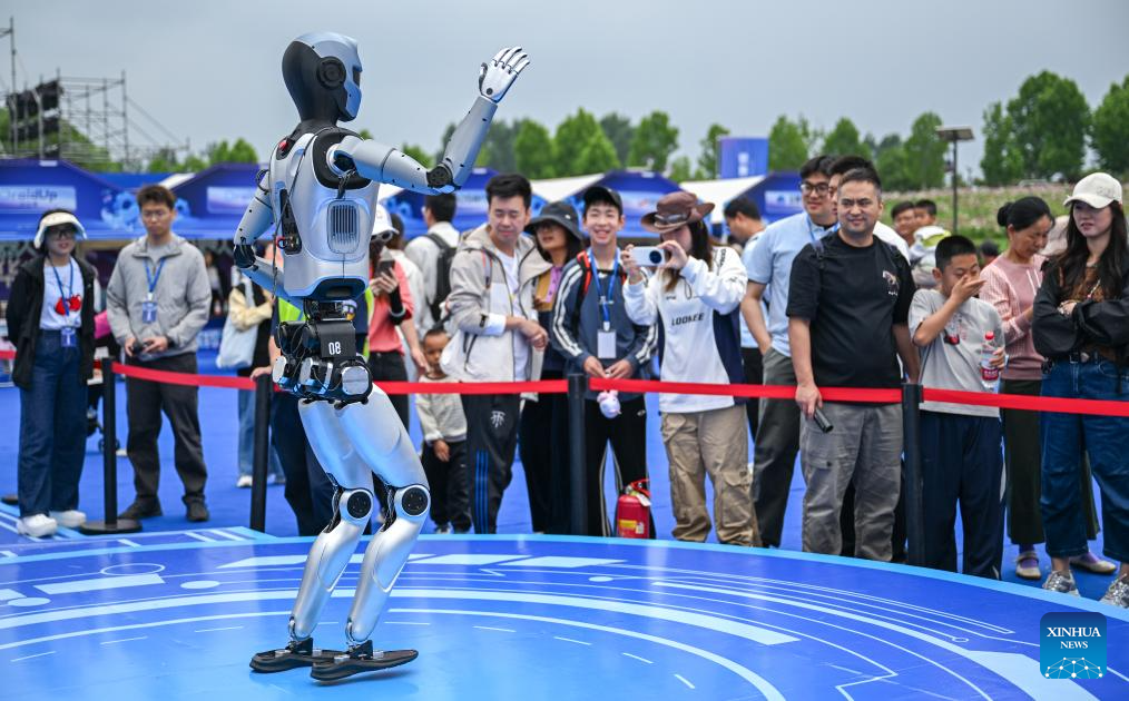 WUHAN, 2 junio, 2025 (Xinhua) -- Visitantes observan la presentación de un robot durante el carnaval mundial de robots, en Wuhan, en la provincia de Hubei, en el centro de China, el 2 de junio de 2025. El evento comenzó aquí el lunes, presentando cerca de 100 robots incluyendo robots mascota, robots maquilladores, banda de robótica, etc. Personas interactuaron con los robots para experimentar el encanto de la vida potenciada por la tecnología. (Xinhua/Du Zixuan)