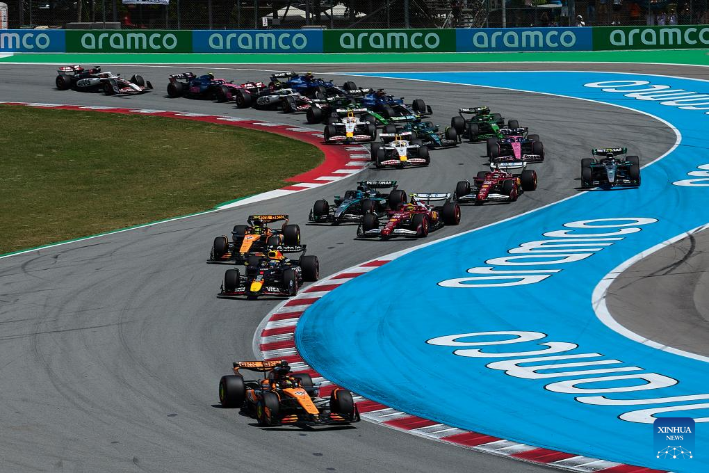 MONTMELO, 2 junio, 2025 (Xinhua) -- Imagen del 1 de junio de 2025 de pilotos compitiendo durante el Gran Premio de España de Fórmula Uno 2025, en el Circuito de Cataluña, en Montmeló, cerca de Barcelona, España. (Xinhua/Pablo Morano)