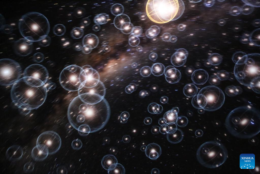 NUEVA YORK, 4 junio, 2025 (Xinhua) -- Imagen del 3 de junio de 2025 del movimiento cósmico en Encuentros en la Vía Láctea, el séptimo espectáculo espacial del Planetario Hayden, en el Museo Americano de Historia Natural, en la ciudad de Nueva York, Estados Unidos. El Museo Americano de Historia Natural de la Ciudad de Nueva York estrena un nuevo espectáculo espacial para presentar la historia del movimiento cósmico y su impacto en el sistema solar, ofreciendo un viaje por la historia y el futuro de la Vía Láctea. (Xinhua/Liu Yanan)