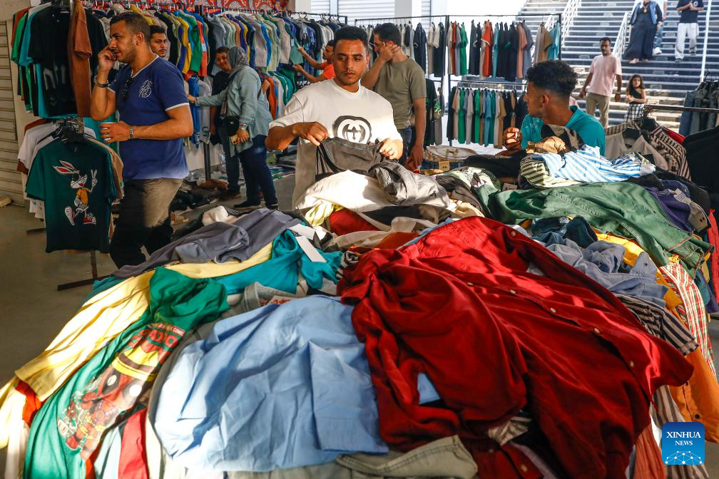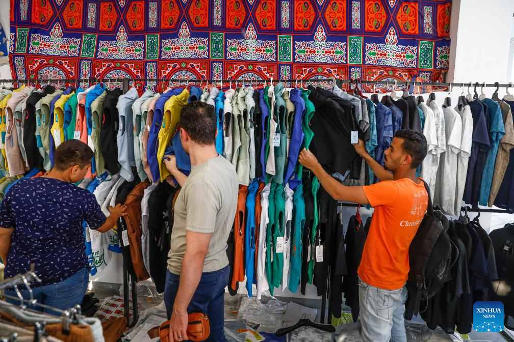 EL CAIRO, 4 junio, 2025 (Xinhua) -- Personas compran en una feria de ropa con descuento, en El Cairo, Egipto, el 4 de junio de 2025. A pesar de los desafíos económicos en Egipto, un aire de optimismo recorre las calles. Los comerciantes observan un aumento de residentes locales en busca de ropa nueva para celebrar las festividades del 6 de junio. (Xinhua/Ahmed Gomaa)