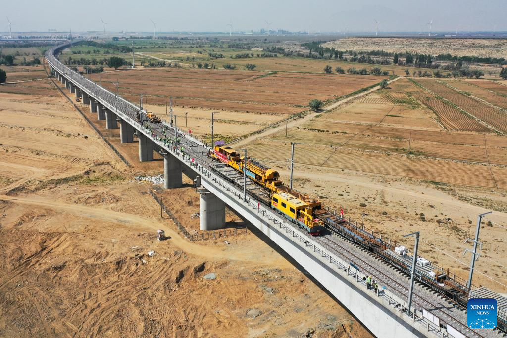 Finaliza fase de tendido de vías del tramo de Mongolia Interior del proyecto del ferrocarril de alta velocidad Baotou-Yinchuan