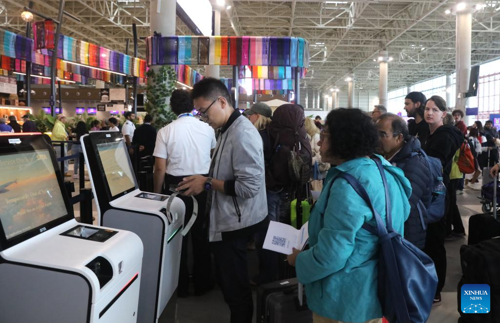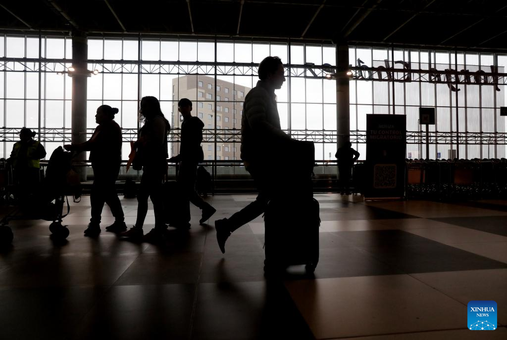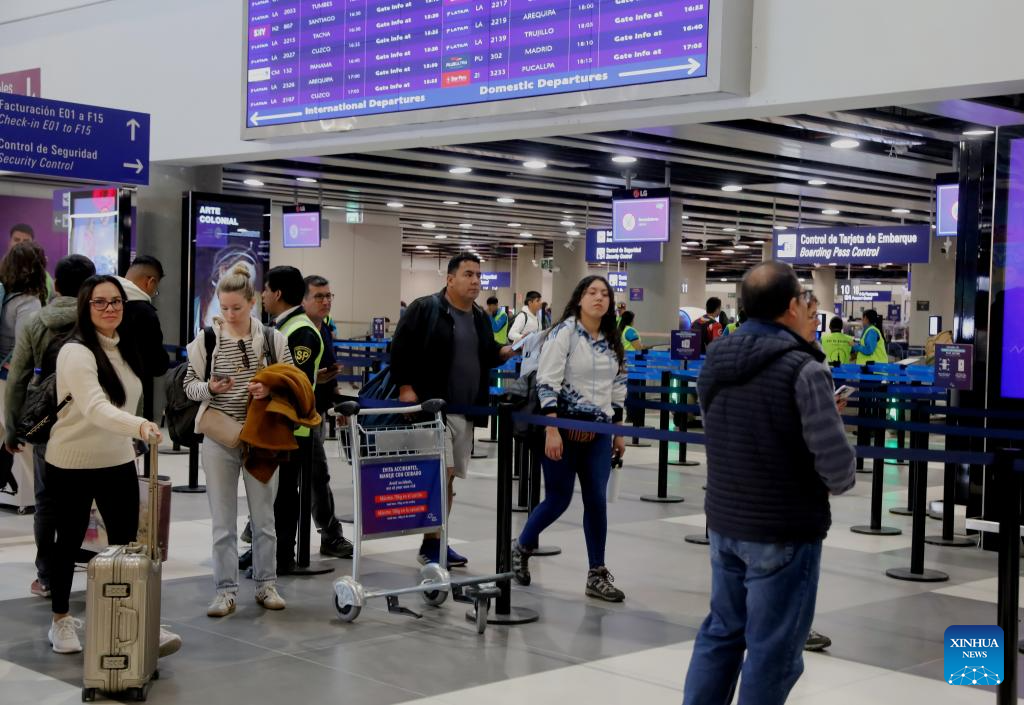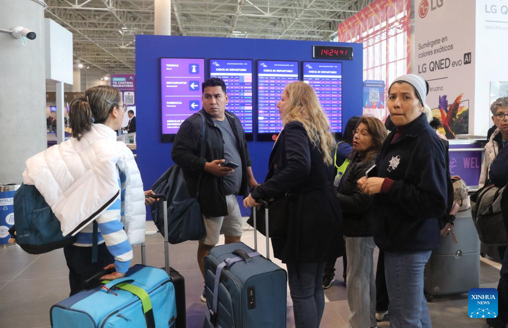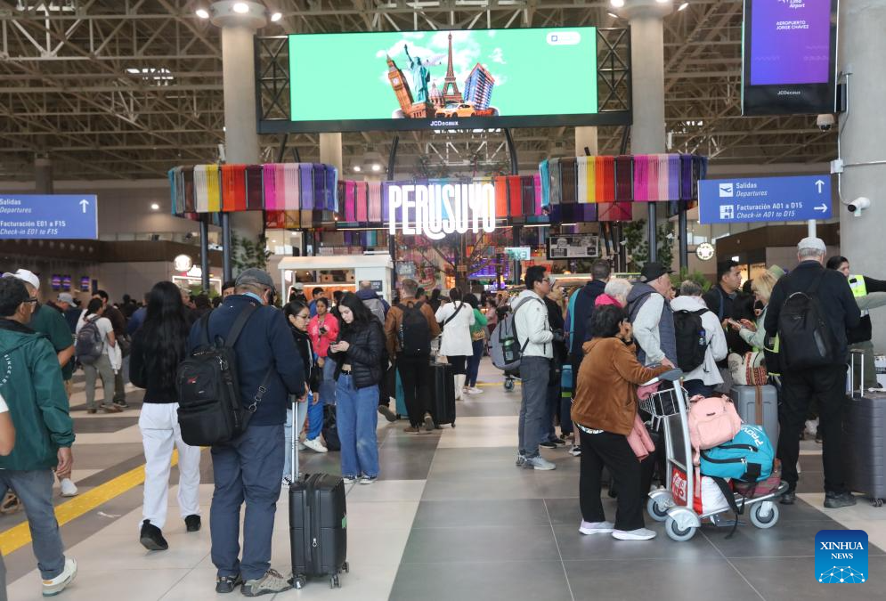 CALLAO, 6 junio, 2025 (Xinhua) -- Pasajeros con maletas esperan en el nuevo Aeropuerto Internacional Jorge Chávez, en Callao, Perú, el 6 de junio de 2025. (Xinhua/Mariana Bazo)