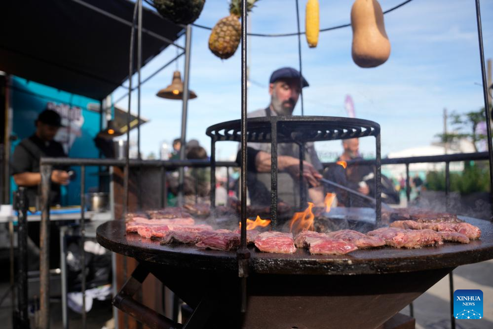 MONTEVIDEO, 7 junio, 2025 (Xinhua) -- Un cocinero prepara carne asada durante el festival gastronómico Ollas del Mundo 2025 llevado a cabo en el Espacio Modelo, en Montevideo, capital de Uruguay, el 7 de junio de 2025. (Xinhua/Nicolás Celaya)