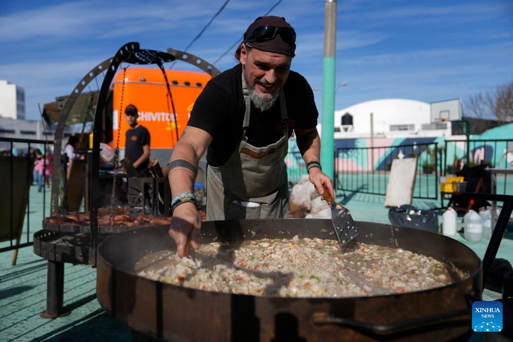 MONTEVIDEO, 7 junio, 2025 (Xinhua) -- Un cocinero prepara alimentos durante el festival gastronómico Ollas del Mundo 2025 llevado a cabo en el Espacio Modelo, en Montevideo, capital de Uruguay, el 7 de junio de 2025. (Xinhua/Nicolás Celaya)