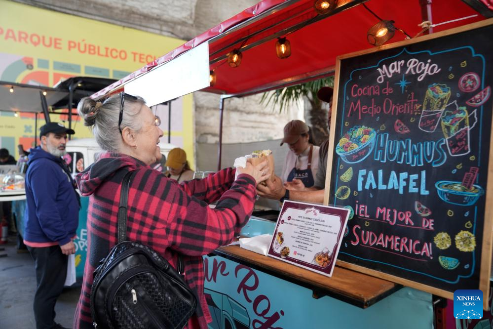 MONTEVIDEO, 7 junio, 2025 (Xinhua) -- Una mujer compra alimentos durante el festival gastronómico Ollas del Mundo 2025 llevado a cabo en el Espacio Modelo, en Montevideo, capital de Uruguay, el 7 de junio de 2025. (Xinhua/Nicolás Celaya)