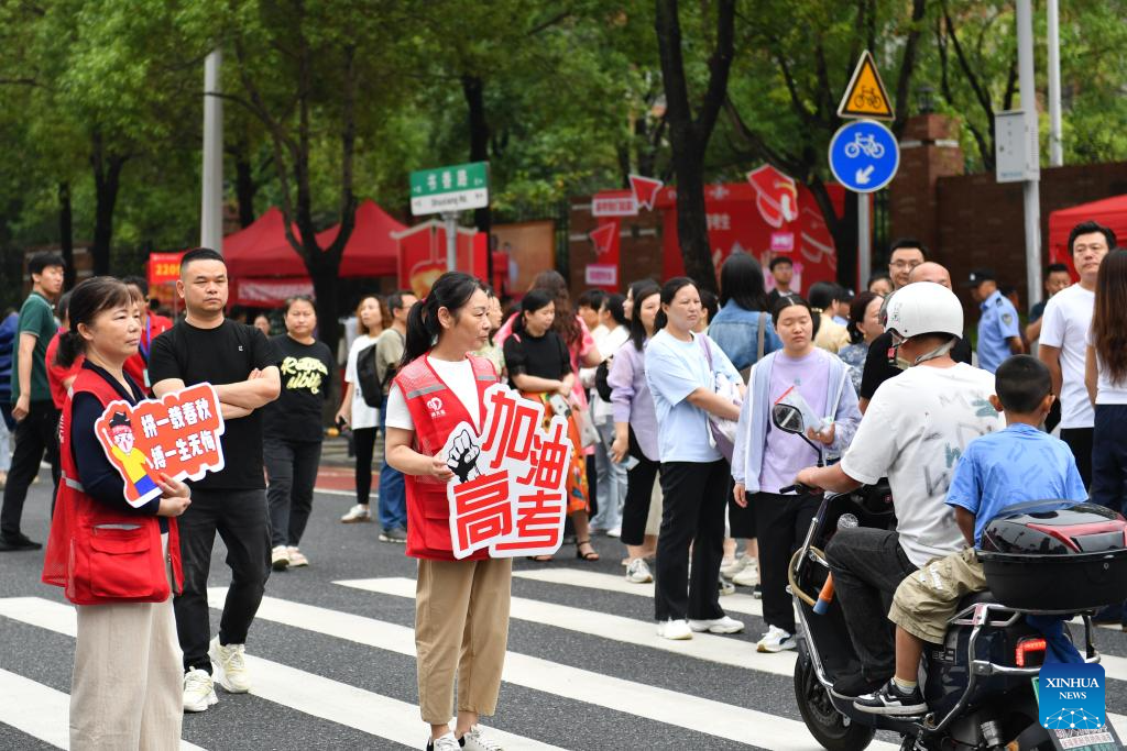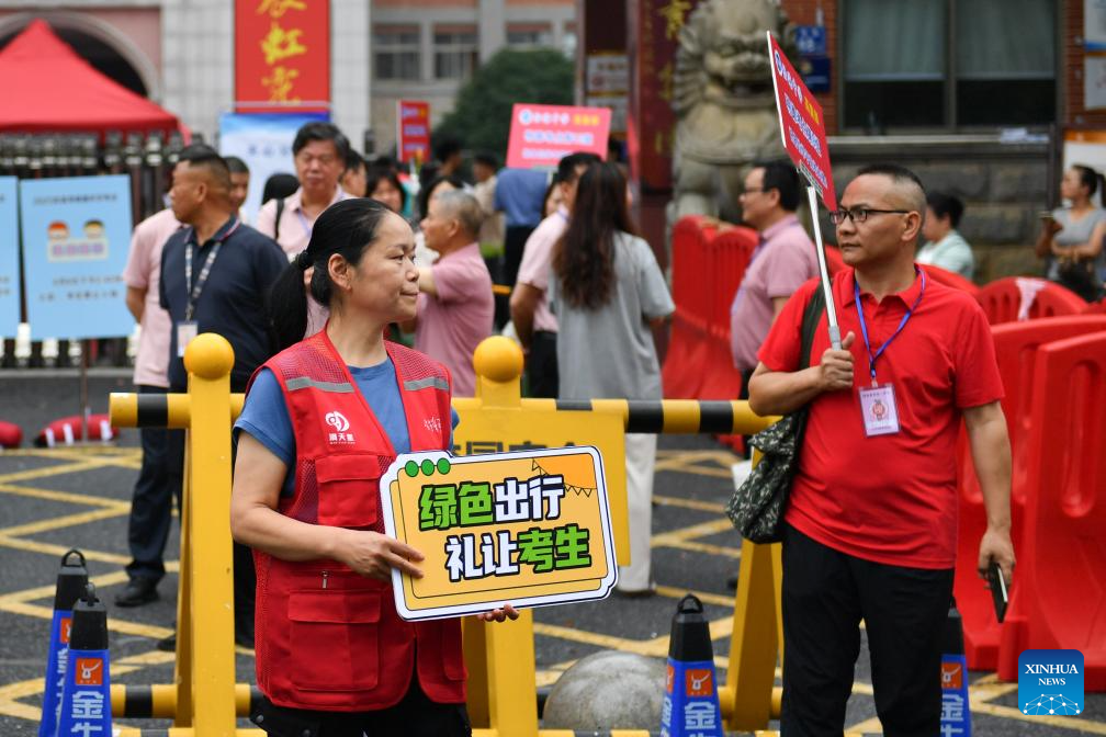 Voluntarios apoyan a estudiantes durante el examen nacional de ingreso a la universidad en Changsha