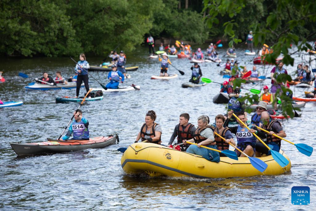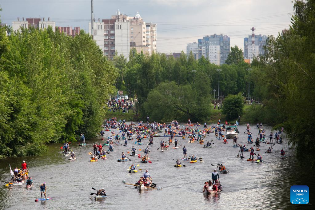 SAN PETERSBURGO, 8 junio, 2025 (Xinhua) -- Imagen del 7 de junio de 2025 de personas participando en el maratón de canoas Petrovskiy, en San Petersburgo, Rusia. El maratón de canoas atrajo a más de 3.000 participantes. (Xinhua/Irina Motina)