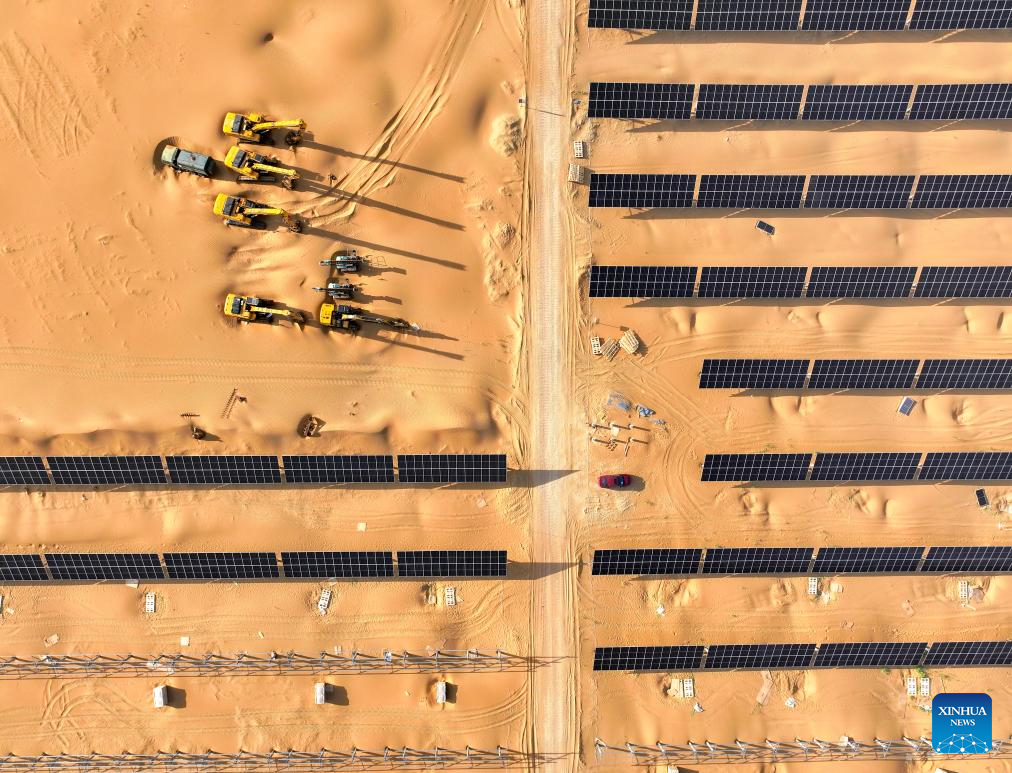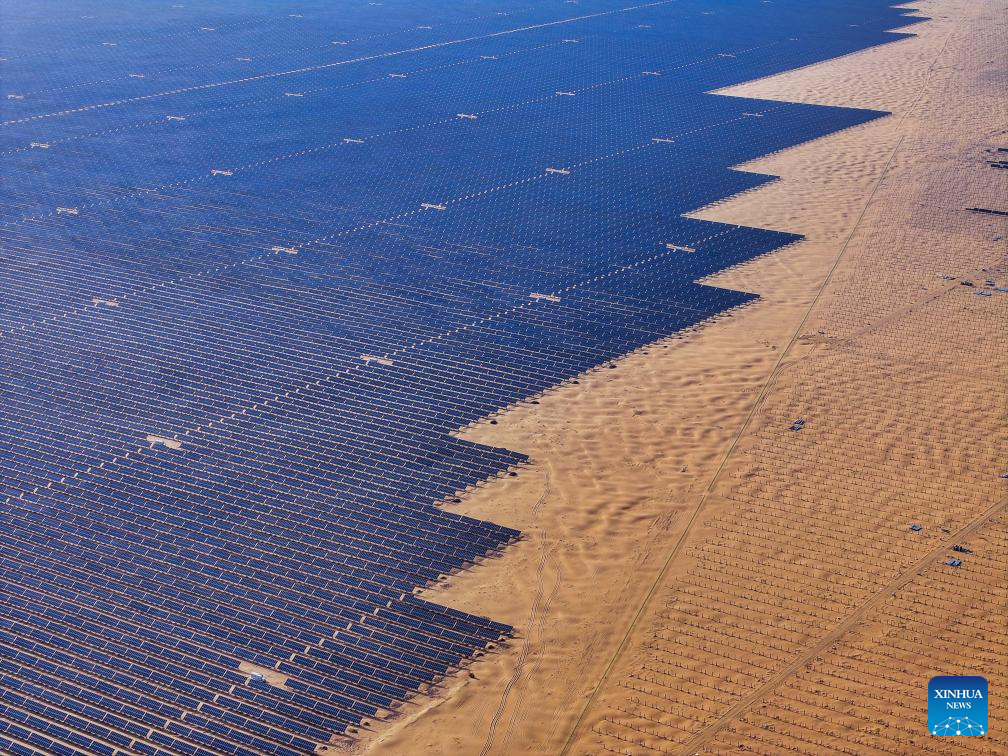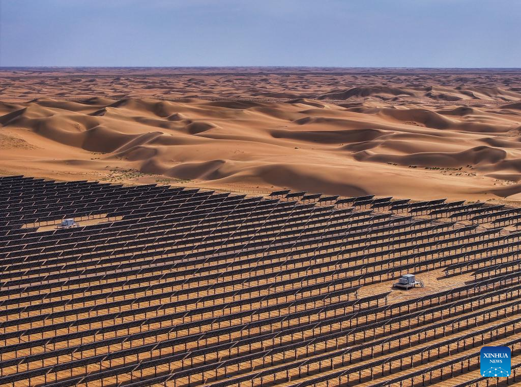 Proyectos fotovoltaicos transforman terreno arenoso en "mares azules" de energía verde en Mongolia Interior