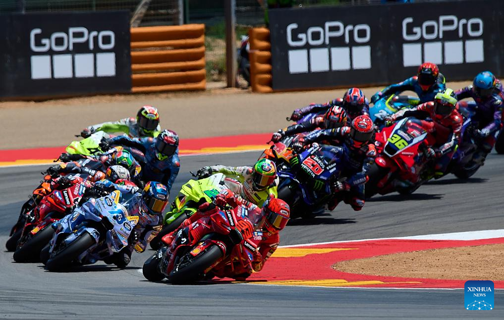 MADRID, 9 junio, 2025 (Xinhua) -- Imagen del 8 de junio de 2025 de motociclistas compitiendo en una carrera durante el Gran Premio de Aragón de MotoGp, en el circuito de Motorland Aragón, en Alcañiz, España. (Xinhua/Str)
