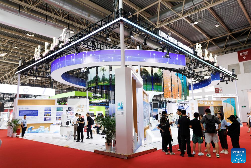 BEIJING, 17 julio, 2025 (Xinhua) -- Imagen del 16 de julio de 2025 del pabellón de la provincia de Shandong durante la III Exposición Internacional de la Cadena de Suministro de China (CISCE, por sus siglas en inglés), en Beijing, capital de China. Celebrada del 16 al 20 de julio, la CISCE 2025 comenzó el miércoles en Beijing. (Xinhua/Jin Liwang)