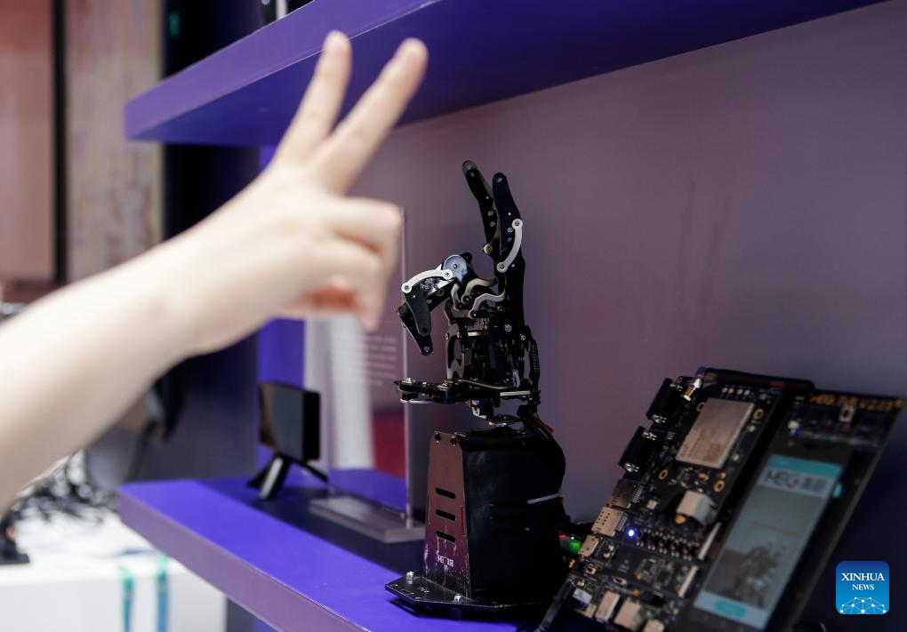 BEIJING, 17 julio, 2025 (Xinhua) -- Un visitante interactúa con una mano biónica inteligente en el estand de Qualcomm en el área de Cadena de Tecnología Digital de la III Exposición Internacional de la Cadena de Suministro de China (CISCE, por sus siglas en inglés), en Beijing, capital de China, el 17 de julio de 2025. Con el tema "Conectar el Mundo para un Futuro Compartido", la exposición, organizada por el Consejo Chino para la Promoción del Comercio Internacional, se inauguró el miércoles en Beijing. Celebrada del 16 al 20 de julio, la CISCE 2025 reunió a más de 650 empresas e instituciones de 75 países, regiones y organizaciones internacionales, junto con más de 500 de sus socios de oferta y demanda. (Xinhua/Ding Hongfa)