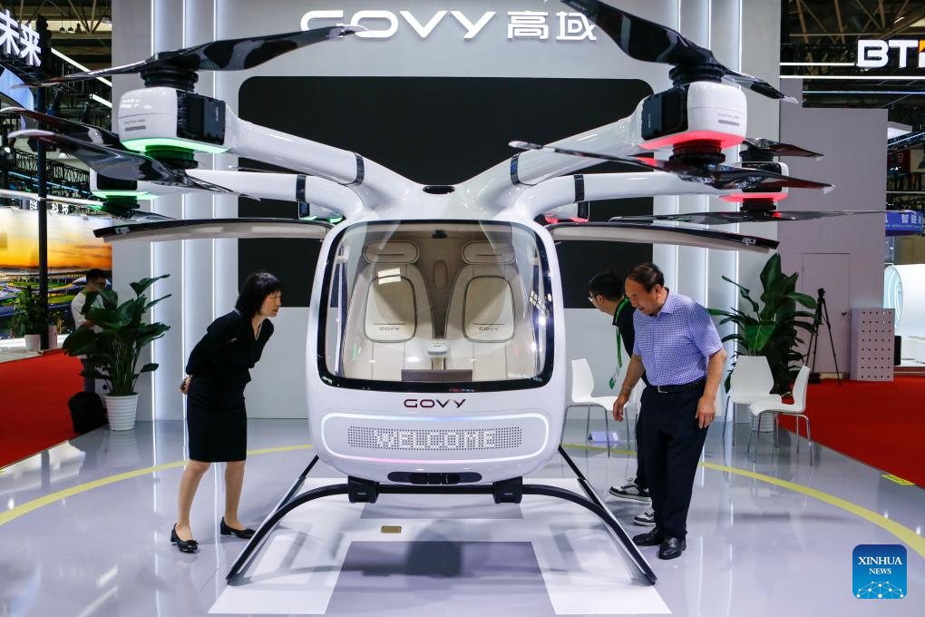 BEIJING, 17 julio, 2025 (Xinhua) -- Imagen del 16 de julio de 2025 de visitantes aprendiendo sobre aeronaves de baja altitud en el estand de la compañía de tecnología COVY en el área de Cadena de Vehículos Inteligentes de la III Exposición Internacional de la Cadena de Suministro de China (CISCE, por sus siglas en inglés), en Beijing, capital de China. Con el tema "Conectar el Mundo para un Futuro Compartido", la exposición, organizada por el Consejo Chino para la Promoción del Comercio Internacional, se inauguró el miércoles en Beijing. Celebrada del 16 al 20 de julio, la CISCE 2025 reunió a más de 650 empresas e instituciones de 75 países, regiones y organizaciones internacionales, junto con más de 500 de sus socios de oferta y demanda. (Xinhua/Ding Hongfa)