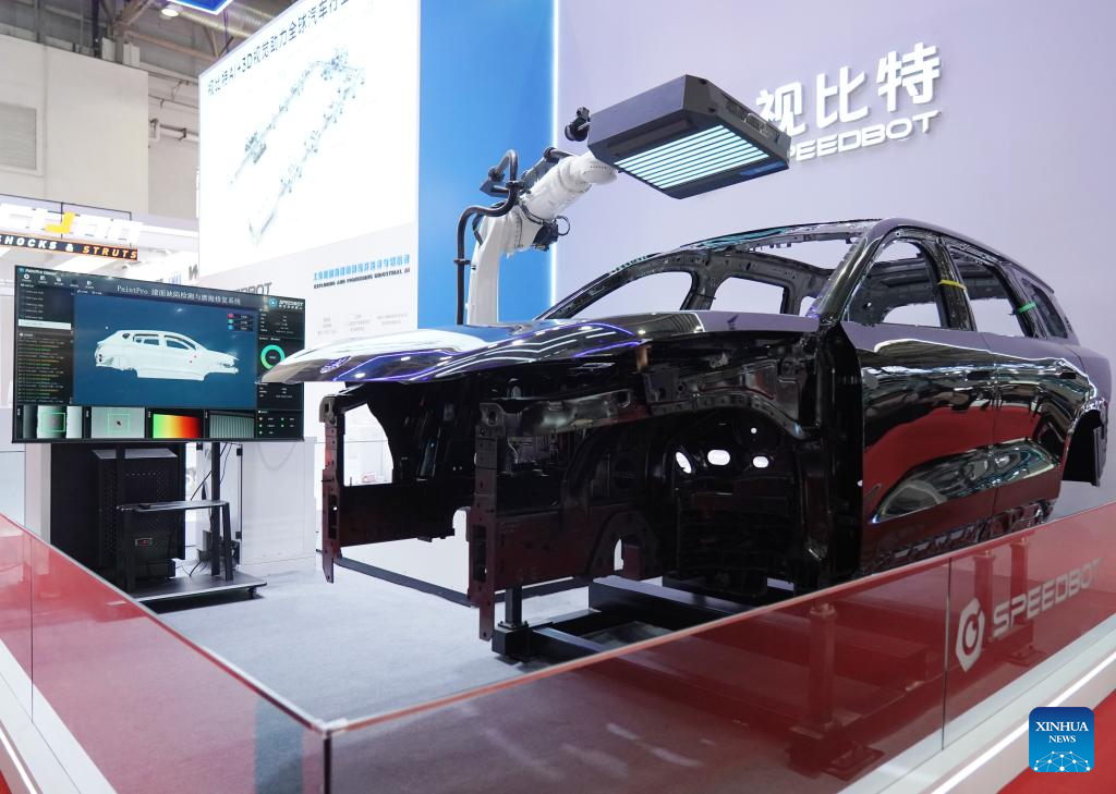 BEIJING, 17 julio, 2025 (Xinhua) -- Una demostración del sistema Paintpro, que detecta y repara defectos de pintura en vehículos, es vista en el estand de SpeedBot en el área de la Cadena de Vehículos Inteligentes de la III Exposición Internacional de la Cadena de Suministro de China (CISCE, por sus siglas en inglés), en Beijing, capital de China, el 17 de julio de 2025. Celebrada del 16 al 20 de julio, la CISCE 2025 comenzó el miércoles en Beijing. Una innovación clave de esta edición es la "Zona Debut", dedicada a los estrenos mundiales de nuevos productos, tecnologías y ecosistemas, presentando innovaciones revolucionarias que impulsan la colaboración industrial. (Xinhua/Zhang Chenlin)