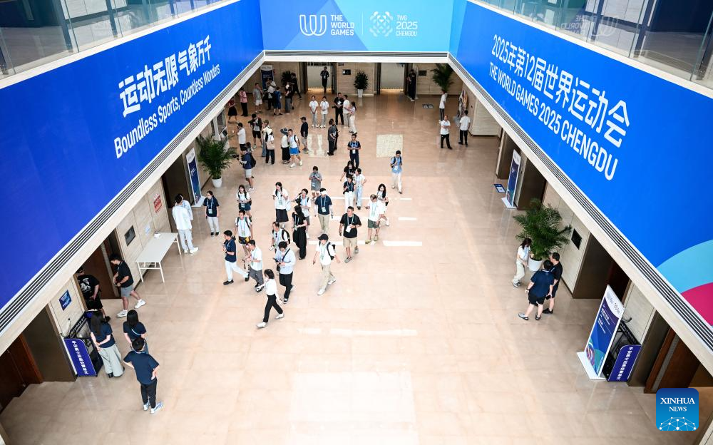 CHENGDU, 4 agosto, 2025 (Xinhua) -- Imagen del 4 de agosto de 2025 del interior del Centro Principal de Medios (MMC, por sus siglas en inglés) para los Juegos Mundiales 2025, en Chengdu, en la provincia de Sichuan, en el suroeste de China. El MMC para los Juegos Mundiales 2025 de Chengdu se inauguró el lunes y estará listo para atender alrededor de 200 organizaciones de medios y casi 2.000 representantes de medios de todo el mundo. (Xinhua/Feng Kaihua)