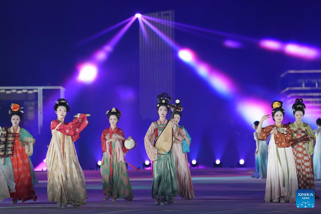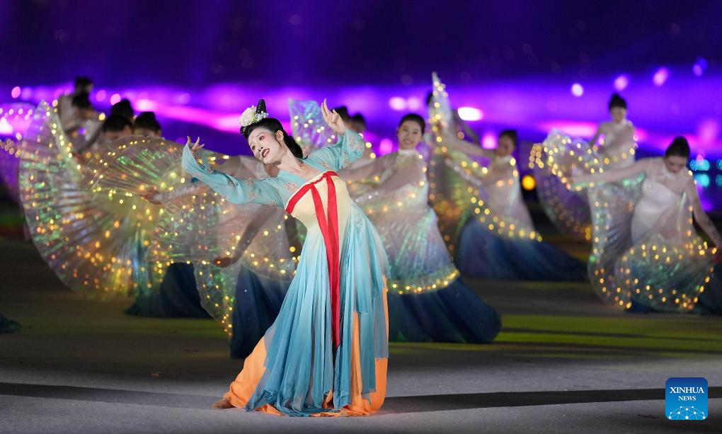 CHENGDU, 7 agosto, 2025 (Xinhua) -- Artistas realizan una presentación durante la ceremonia de inauguración de los Juegos Mundiales 2025, en Chengdu, en la provincia de Sichuan, en el suroeste de China, el 7 de agosto de 2025. (Xinhua/Liu Kun)