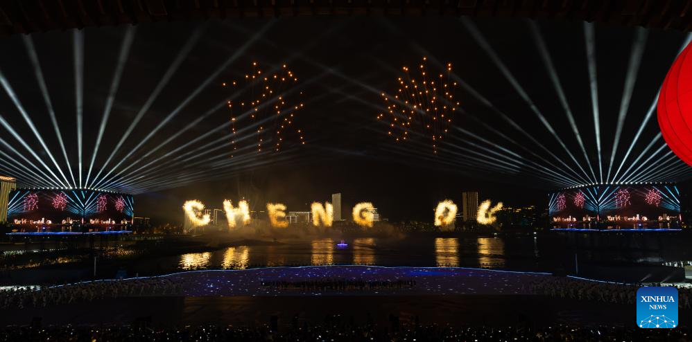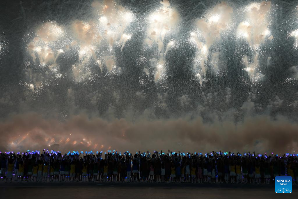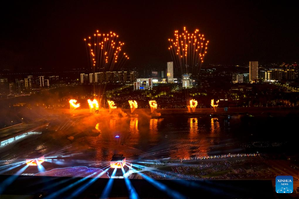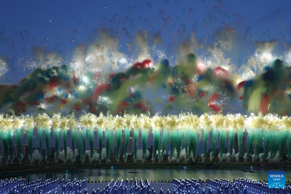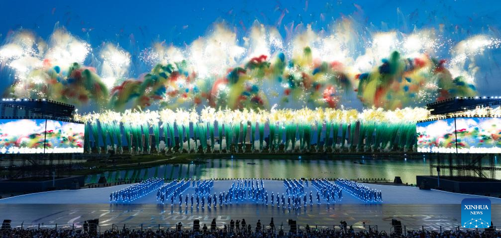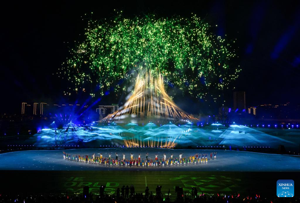 CHENGDU, 7 agosto, 2025 (Xinhua) -- Imagen del 7 de agosto de 2025 del espectáculo en la ceremonia de inauguración de los Juegos Mundiales 2025, en Chengdu, en la provincia de Sichuan, en el suroeste de China. (Xinhua/Jiang Hongjing)