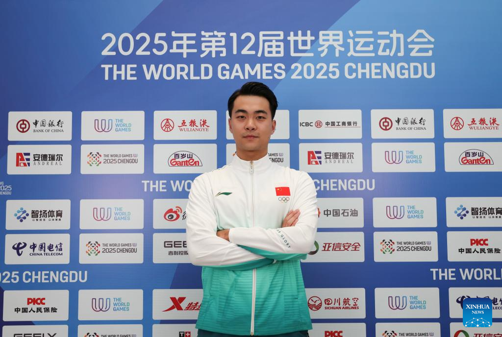 CHENGDU, 6 agosto, 2025 (Xinhua) -- El gimnasta acrobático masculino, Shi Jingwei, abanderado de China en los Juegos Mundiales 2025, posa para una fotografía previo a la entrevista grupal en el Centro Principal de Medios para los Juegos Mundiales 2025, en Chengdu, en la provincia de Sichuan, en el suroeste de China, el 6 de agosto de 2025. (Xinhua/Hu Xingyu)