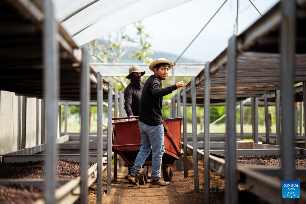 CHIRIQUI, 7 agosto, 2025 (Xinhua) -- Imagen del 3 de febrero de 2025 de trabajadores de Hacienda La Esmeralda transportando granos de café, en la provincia de Chiriquí, Panamá. El café Geisha de Panamá registró el jueves un nuevo récord mundial en su precio, al alcanzar uno de los lotes del aromático los 30.204 dólares por kilogramo, en una subasta electrónica privada organizada por el certamen internacional "The Best of Panamá", informó la Asociación de Cafés Especiales de Panamá. (Xinhua/Xu Yongzheng)