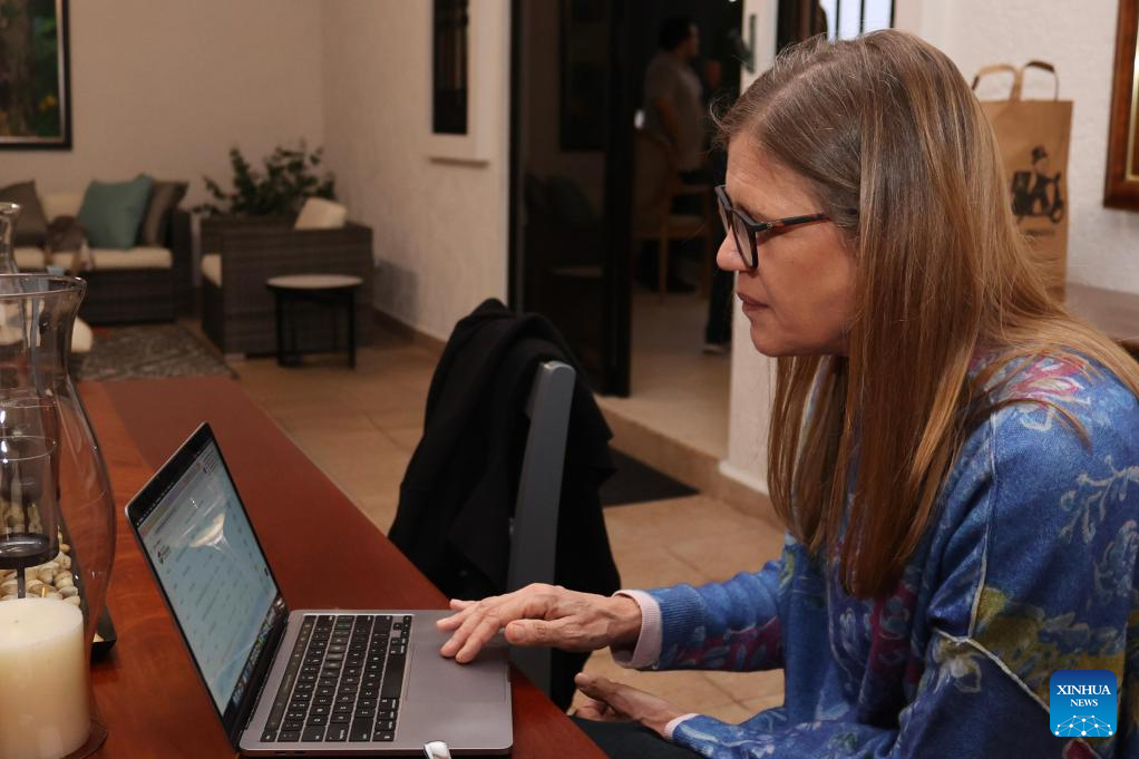 CHIRIQUI, 7 agosto, 2025 (Xinhua) -- Imagen cedida por la Asociación de Cafés Especiales de Panamá (SCAP, siglas en inglés) de Rachel Peterson, directora de Hacienda La Esmeralda, revisando las actualizaciones de precios de una subasta privada en su computadora, en la provincia de Chiriquí, Panamá, el 7 de agosto de 2025. El café Geisha de Panamá registró el jueves un nuevo récord mundial en su precio, al alcanzar uno de los lotes del aromático los 30.204 dólares por kilogramo, en una subasta electrónica privada organizada por el certamen internacional "The Best of Panamá", informó la SCAP. (Xinhua/SCAP)