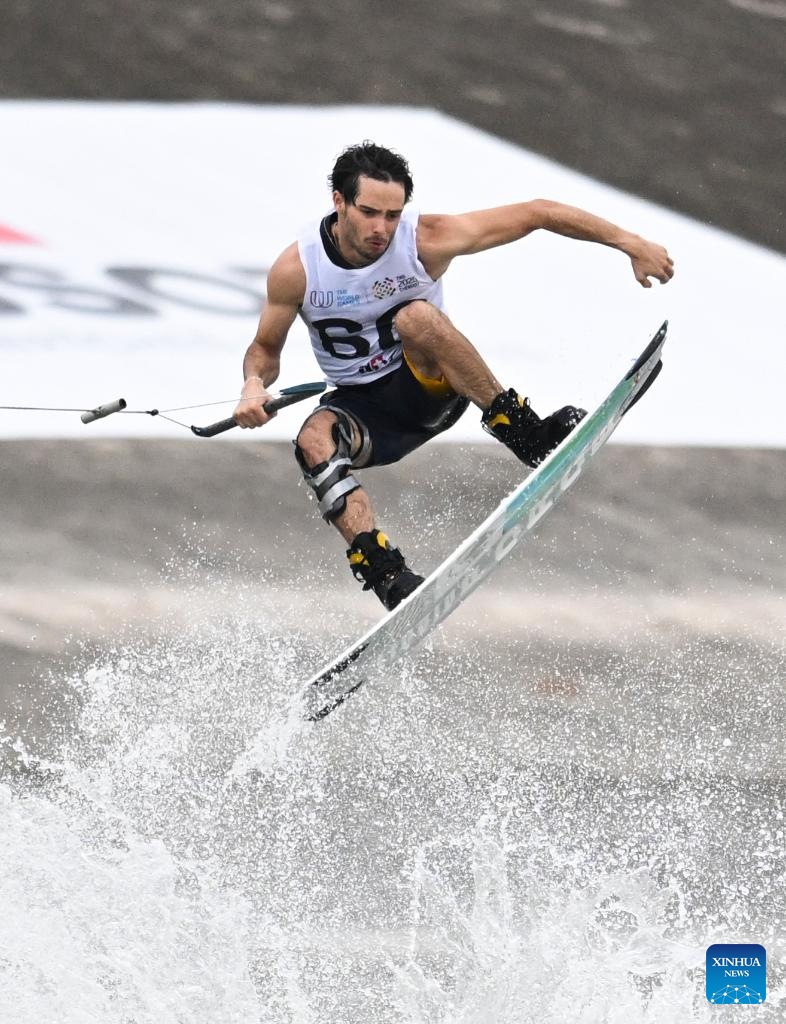 CHENGDU, 8 agosto, 2025 (Xinhua) -- Jorge Rocha, de Colombia, compite durante la clasificación de wakeboard estilo libre masculino del evento de esquí acuático y wakeboard en los Juegos Mundiales 2025, en Chengdu, en la provincia de Sichuan, en el suroeste de China, el 8 de agosto de 2025. (Xinhua/Chen Zhenhai)
