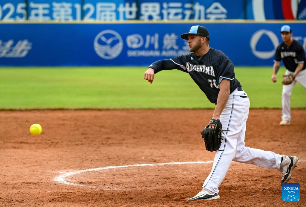 CHENGDU, 8 agosto, 2025 (Xinhua) -- Roman Godoy, de Argentina, compite durante el partido del grupo A de la ronda preliminar de sóftbol masculino entre Japón y Argentina en los Juegos Mundiales 2025, en Chengdu, en la provincia de Sichuan, en el suroeste de China, el 8 de agosto de 2025. (Xinhua/Feng Kaihua)