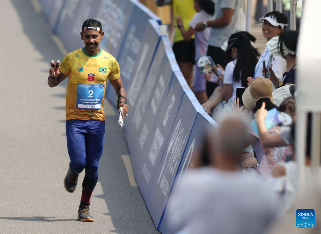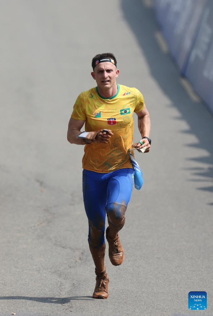 CHENGDU, 8 agosto, 2025 (Xinhua) -- Leandro Nascimento, de Brasil, compite durante la final de media distancia masculina del evento de orientación en los Juegos Mundiales 2025, en Chengdu, en la provincia de Sichuan, en el suroeste de China, 8 de agosto de 2025. (Xinhua/Wang Xiang)