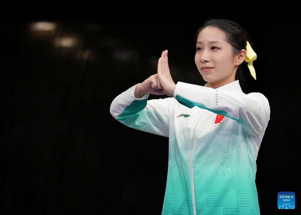 CHENGDU, 8 agosto, 2025 (Xinhua) -- Lu Zhuoling, de China, asiste a la ceremonia de premiación de la final de Taijiquan-Taijijian femenino del evento de wushu en los Juegos Mundiales 2025, en Chengdu, en la provincia de Sichuan, en el suroeste de China, el 8 de agosto de 2025. (Xinhua/Xu Suhui)