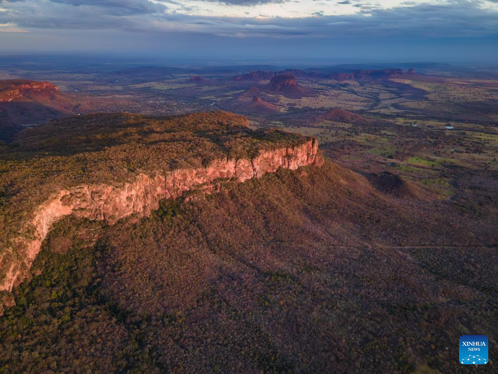 MATO GROSSO DO SUL, 9 agosto, 2025 (Xinhua) -- Vista aérea tomada con un dron el 7 de agosto de 2025 del Morro do Paxixi, en el comienzo del Pantanal Sur, en la ciudad de Aquidauana, en el estado de Mato Grosso do Sul, Brasil. (Xinhua/Paulo Lopes)