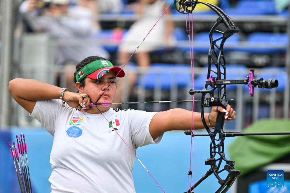 CHENGDU, 9 agosto, 2025 (Xinhua) -- Andrea Maya Becerra Arizaga, de México, compite ante Lisell Jaatma, de Estonia, durante el encuentro por la medalla de oro de compuesto femenino en el evento de tiro con arco en los Juegos Mundiales 2025, en Chengdu, en la provincia de Sichuan, en el suroeste de China, el 9 de agosto de 2025. (Xinhua/Yang Wenbin)
