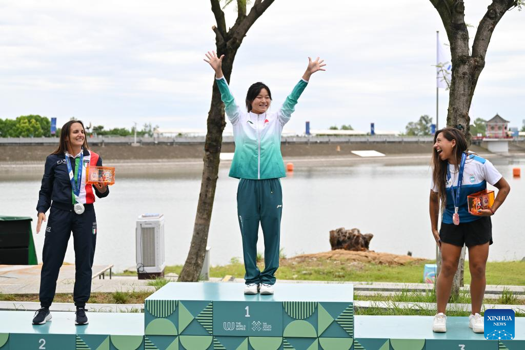 CHENGDU, 10 ago (Xinhua) -- La esquiadora acuática china Xu Lu reclamó la victoria en el evento de estilo libre de wakeboard femenil de los Juegos Mundiales 2025 disputado hoy en el Centro Acuático Internacional Lago Sancha en Chengdu, mientras que Alice Virag de Italia y Eugenia de Armas de Argentina terminaron en segunda y tercera posición, respectivamente.