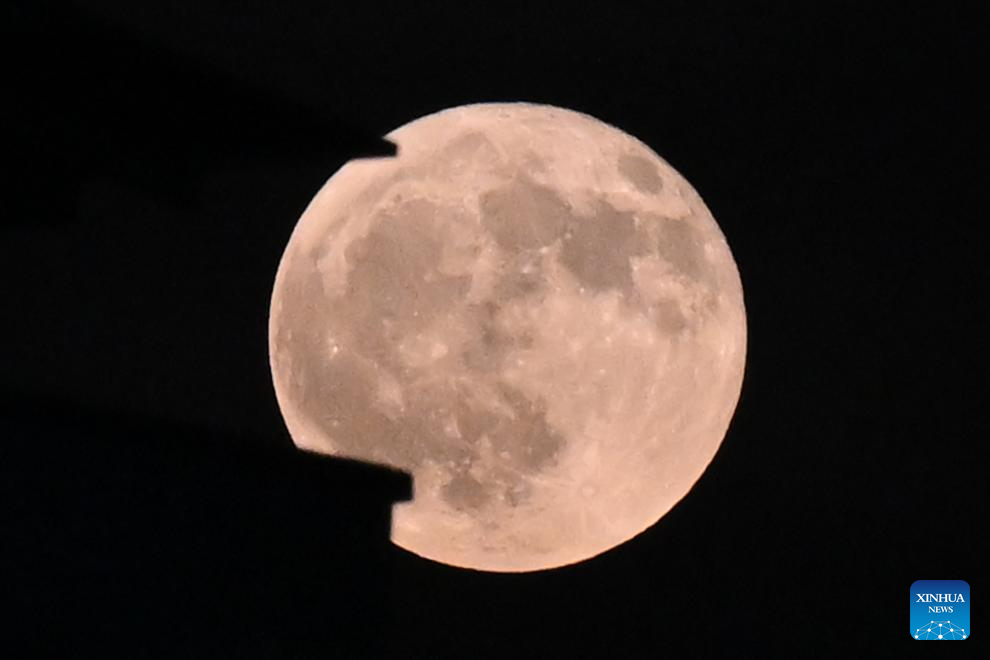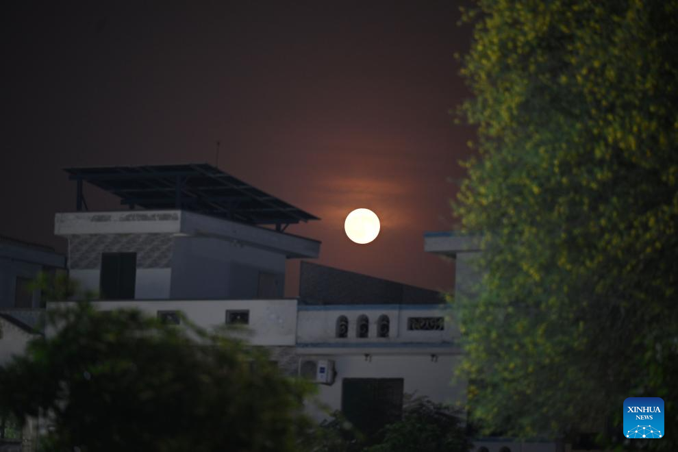 ISLAMABAD, 10 agosto, 2025 (Xinhua) -- Imagen del 9 de agosto de 2025 de una luna llena vista, en Islamabad, capital de Pakistán. (Xinhua/Ahmad Kamal)