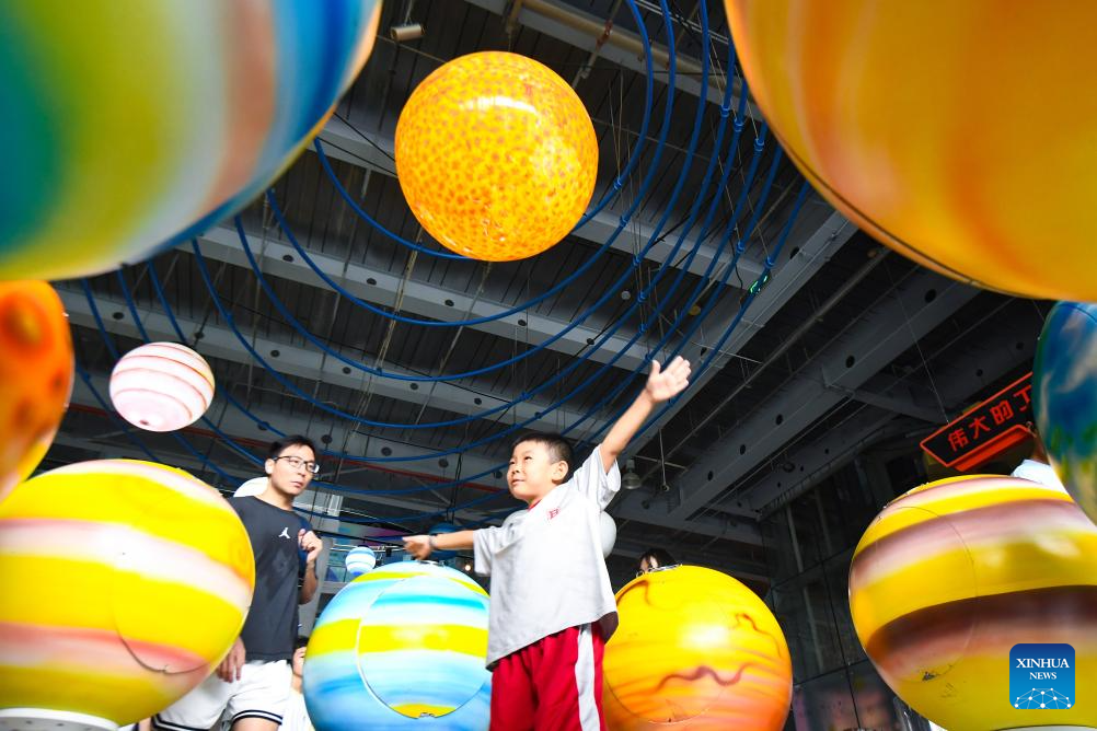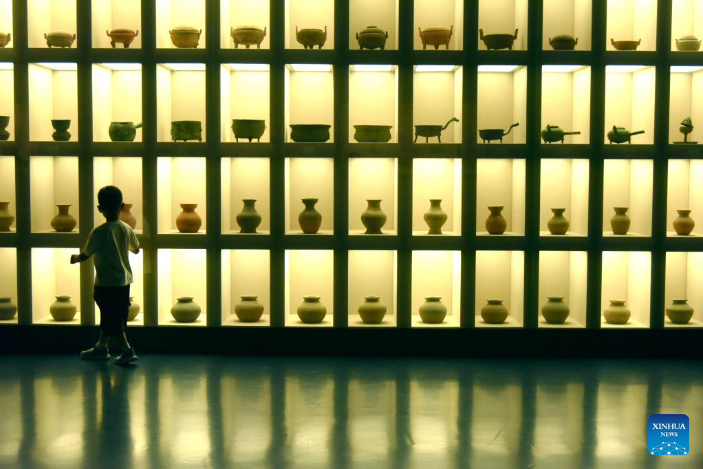 BEIJING, 10 agosto, 2025 (Xinhua) -- Un niño visita el Museo de Tengzhou, en Tengzhou, en la provincia de Shandong, en el este de China, el 10 de agosto de 2025. Niños de toda China participan en diversas actividades para pasar el verano. (Xinhua/Liu Mingxiang)