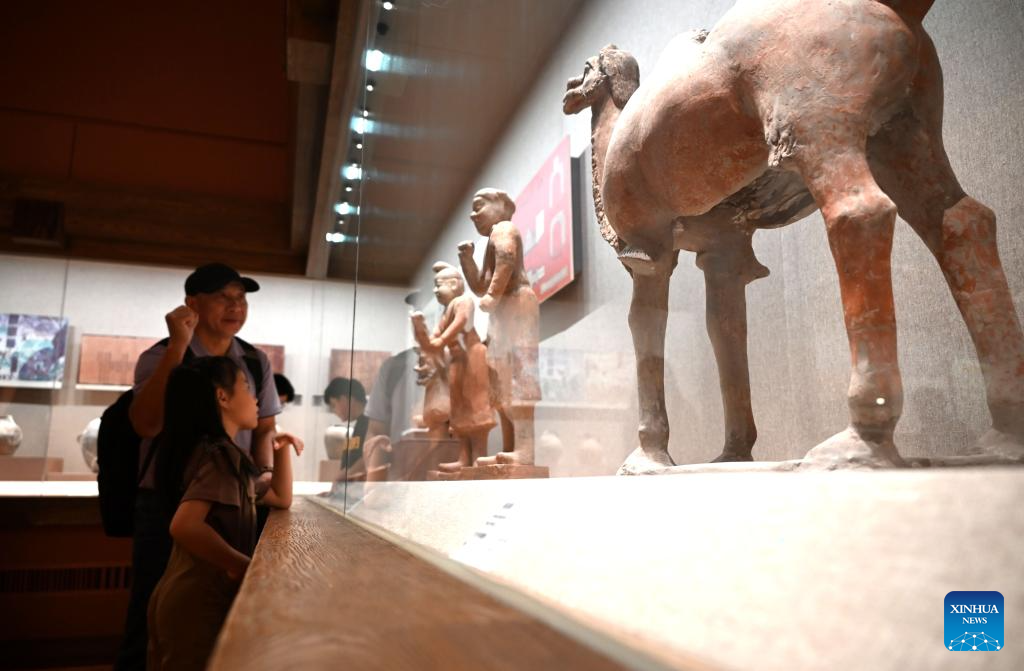 BEIJING, 10 agosto, 2025 (Xinhua) -- Una niña visita el Museo de Dunhuang con un familiar, en Dunhuang, en la provincia de Gansu, en el noroeste de China, el 10 de agosto de 2025. Niños de toda China participan en diversas actividades para pasar el verano. (Xinhua/Zhang Xiaoliang)