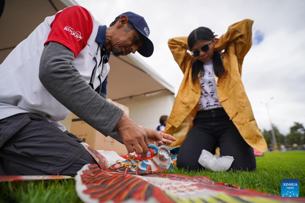 BOGOTA, 11 agosto, 2025 (Xinhua) -- Imagen del 10 de agosto de 2025 de un hombre y una mujer ensamblando una cometa tradicional durante el Festival de Cometas en el marco del Festival de Verano de Bogotá, que este año tiene a China como país invitado de honor, en Bogotá, capital de Colombia. Miles de colombianos se sumaron a la exhibición de componentes de la cultura china realizada el domingo en el Festival de Cometas, llevado a cabo en el Parque Metropolitano El Tunal, en el sur de la capital de Colombia. (Xinhua/Andrés Moreno)