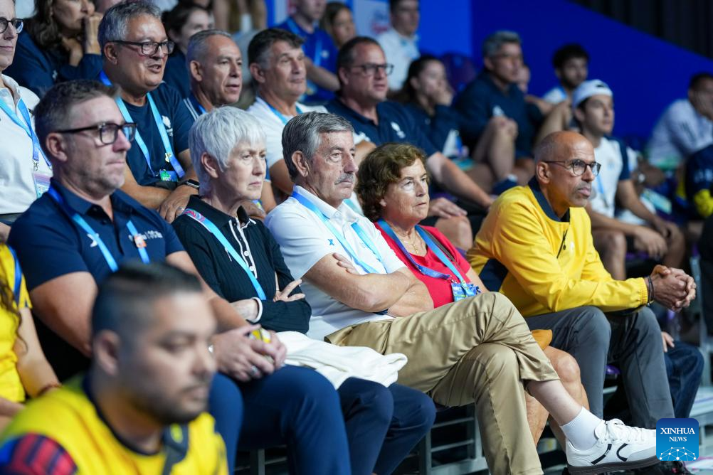 CHENGDU, 11 agosto, 2025 (Xinhua) -- El presidente de la Asociación Internacional de Juegos Mundiales, José Perurena (c), observa el partido de semifinal de individuales masculinos de Squash entre Victor Crouin, de Francia, y Miguel Rodríguez, de Colombia, en los Juegos Mundiales 2025, en Chengdu, en la provincia de Sichuan, en el suroeste de China, el 11 de agosto de 2025. (Xinhua/Li Xulun)