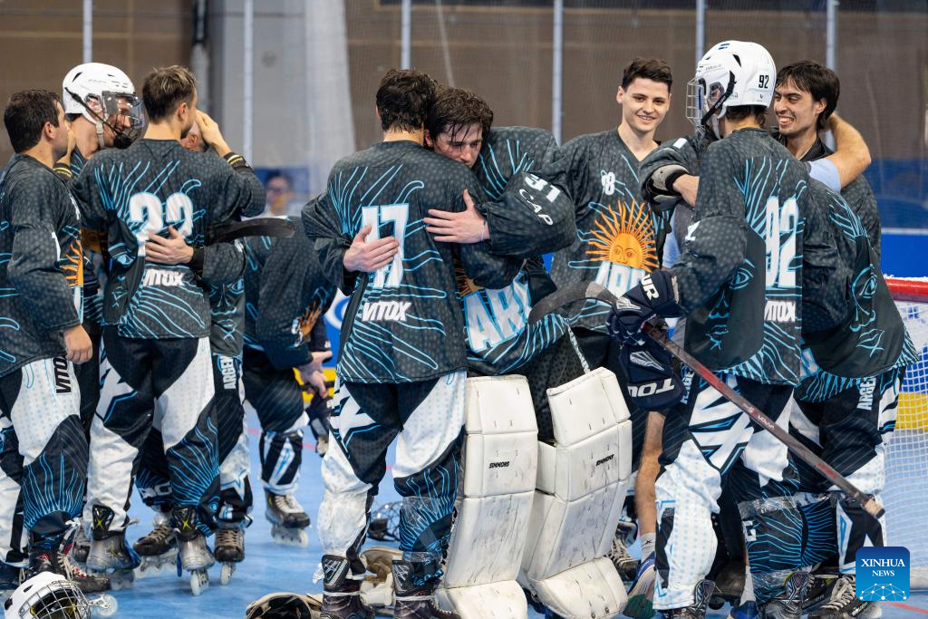 CHENGDU, 11 agosto, 2025 (Xinhua) -- Jugadores del equipo de Argentina festejan la victoria al término del partido masculino por el séptimo lugar del evento de hockey en línea en los Juegos Mundiales 2025, en Chengdu, en la provincia de Sichuan, en el suroeste de China, el 11 de agosto de 2025. (Xinhua/Xie Jianfei)