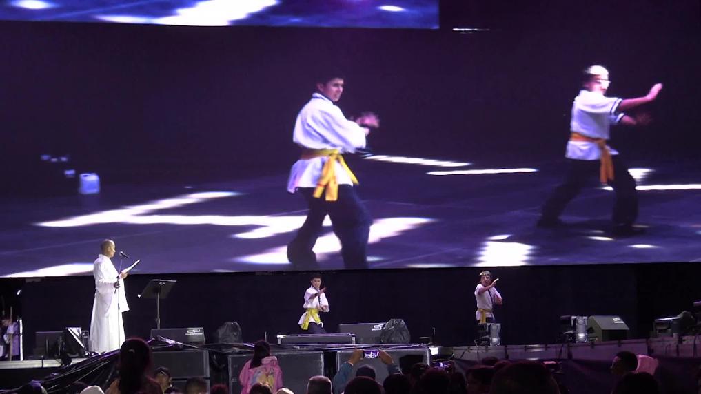 BUENOS AIRES, 13 agosto, 2025 (Xinhua) -- Personas interactúan con una de las obras exhibidas durante la exposición Rituales Tecnológicos II en el Palacio Libertad, en la ciudad de Buenos Aires, capital de Argentina, el 13 de agosto de 2025. (Xinhua/Martín Zabala)