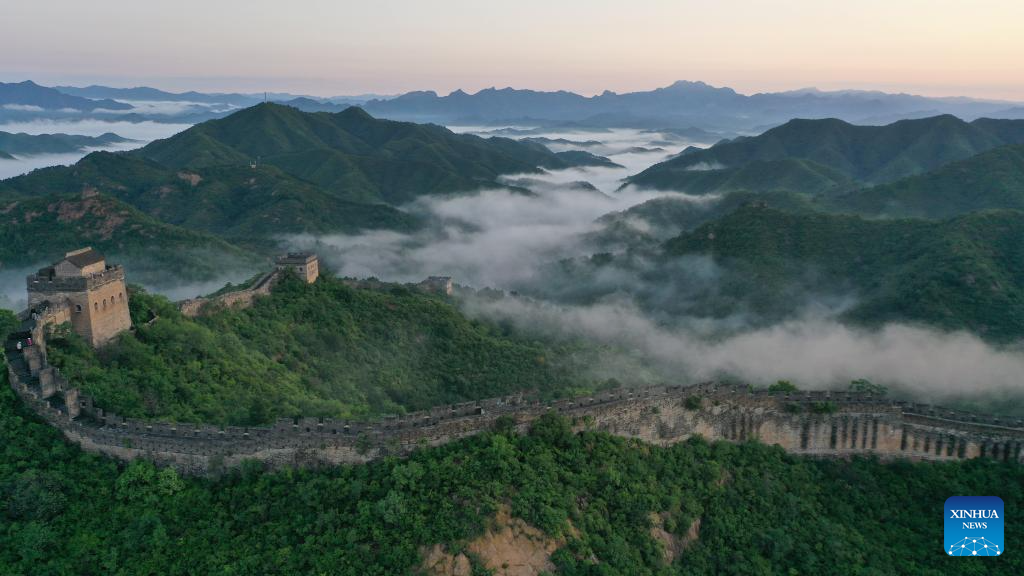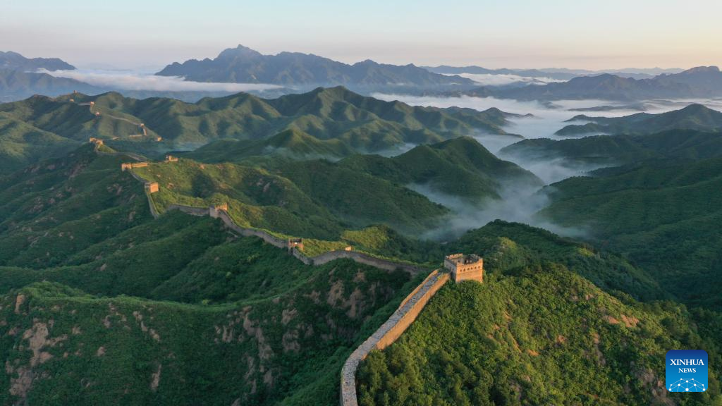 CHENGDE, 14 agosto, 2025 (Xinhua) -- Vista aérea tomada con un dron el 14 de agosto de 2025 de la sección de Jinshanling de la Gran Muralla, en el distrito de Luanping de Chengde, en la provincia de Hebei, en el norte de China. (Xinhua/Zhou Wanping)