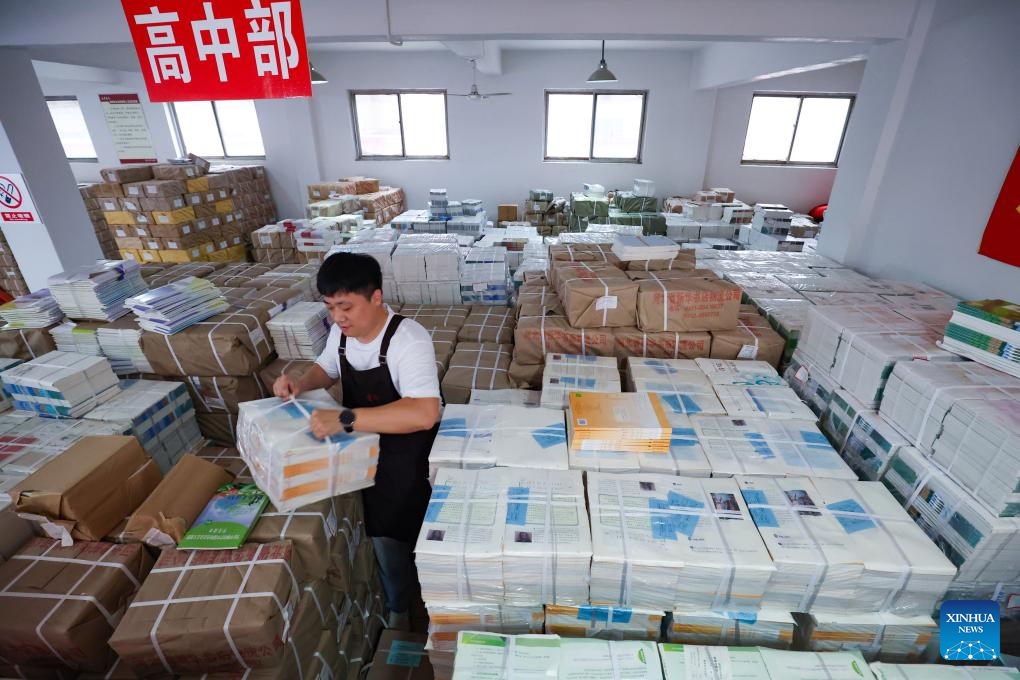 Escuelas y librerías de China preparan libros de texto para próximo semestre