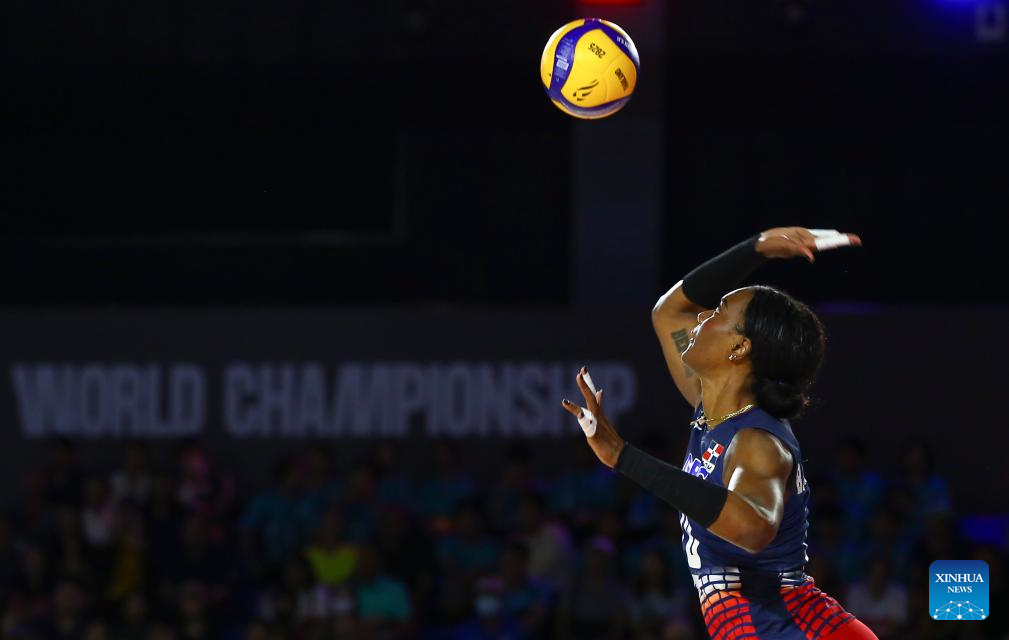 CHIANG MAI, 25 agosto, 2025 (Xinhua) -- Brayelin Elizabeth Martínez, de República Dominicana, sirve el balón durante el partido del grupo F de la fase preliminar entre República Dominicana y México, en el Campeonato Mundial de Voleibol Femenino, en Chiang Mai, Tailandia, el 25 de agosto de 2025. (Xinhua/Sun Weitong)